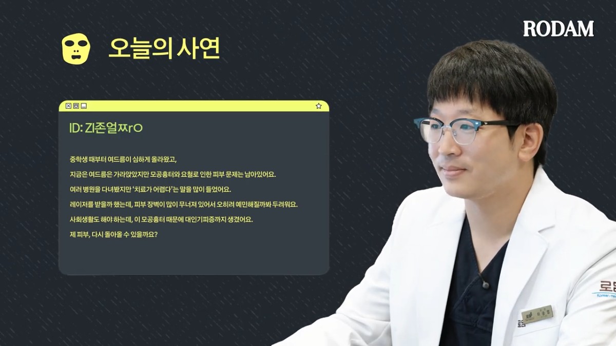 사회생활도 해야 하는데, 이 모공흉터 때문에 대인기피증까지 생겼어요.