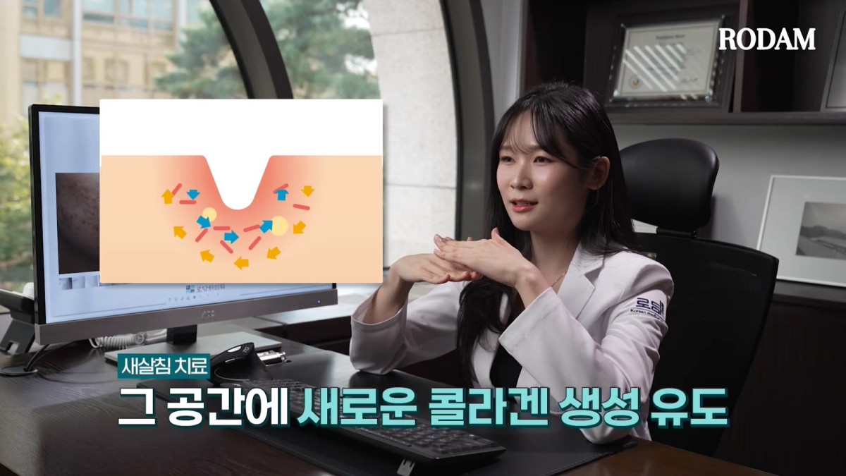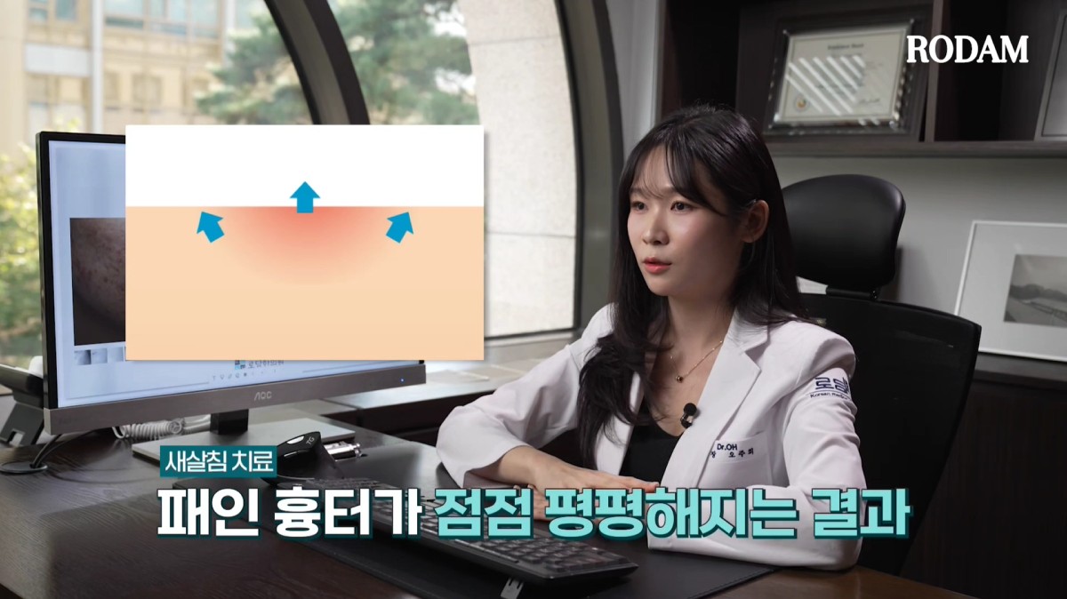 이 과정을 통해 패인 흉터가 올라오면서 점점 평평해지는 거죠.