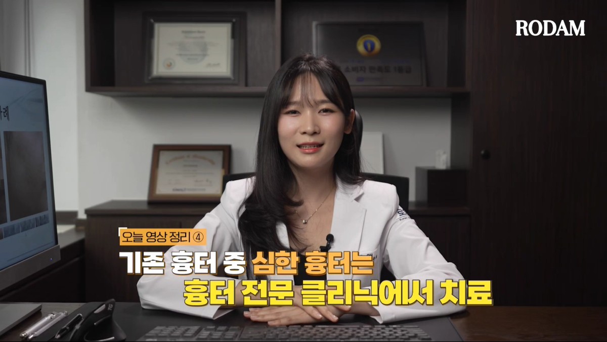 ✅이미 생긴 흉터, 특히 심한 흉터는 흉터 전문 클리닉에서 전문가 상담과 치료를 받는 것이 가장 확실합니다.
