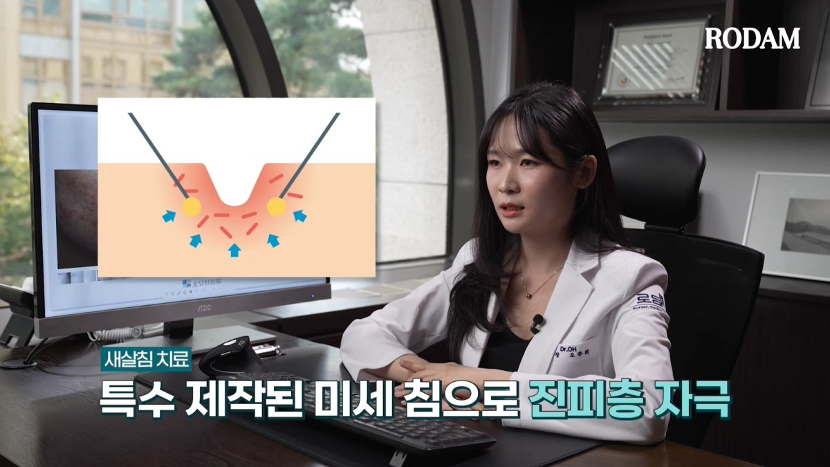 새살침 치료는 특수 제작된 미세 침으로 진피층을 자극해