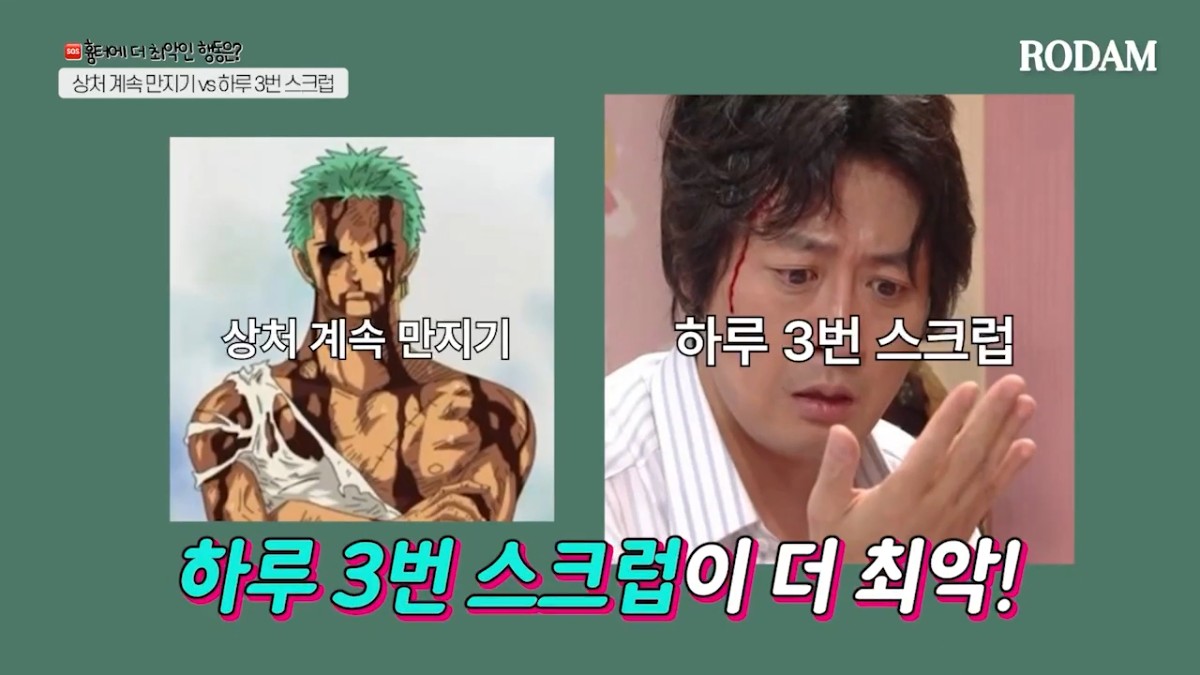 흉터 치료 간격 무시 vs 손으로 흉터 착즙(짜기)