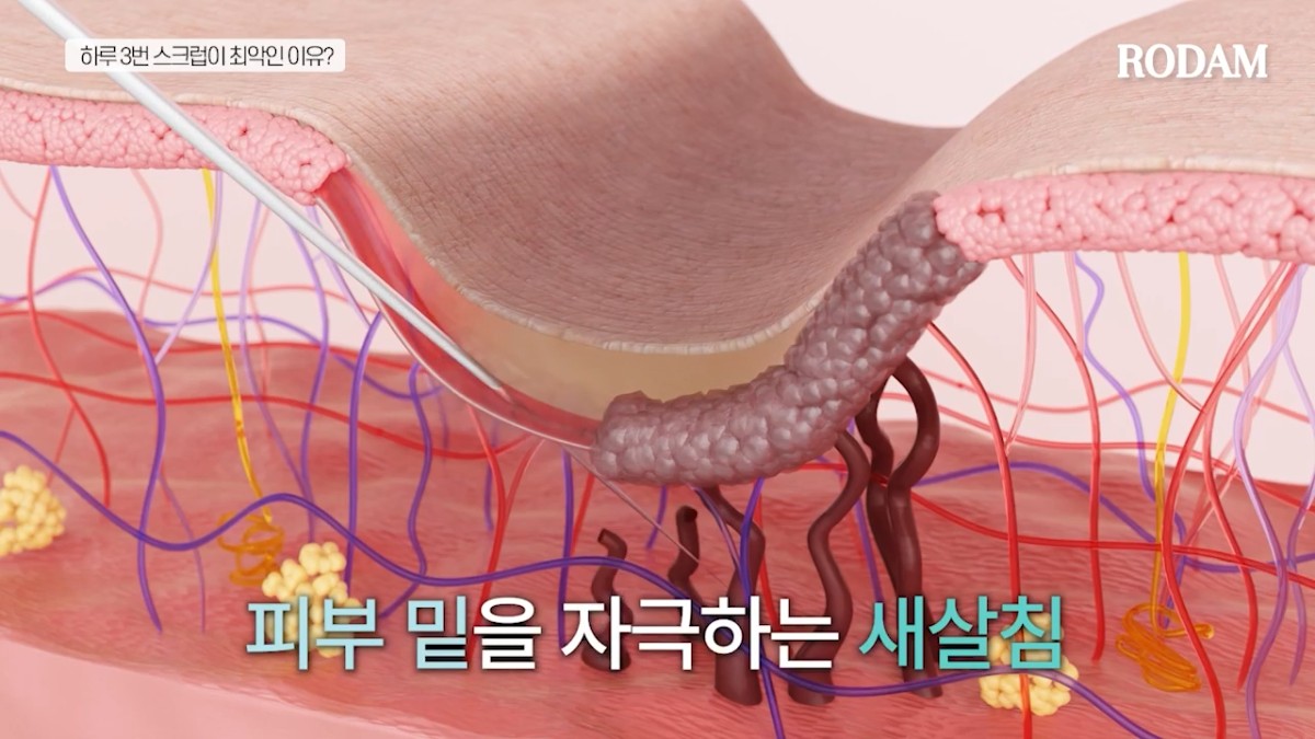 상처 부위를 계속 만지거나 스크럽을 자주 하게 되면 흉터 개선과 피부 재생에 역효과를 줄 수 있습니다.