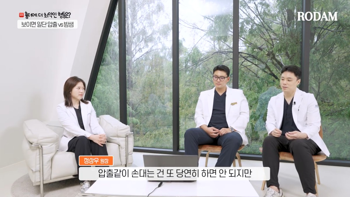 또 다른 흉터가 생길 수 있기 때문에 깨끗한 손으로 정확하게 압출하거나