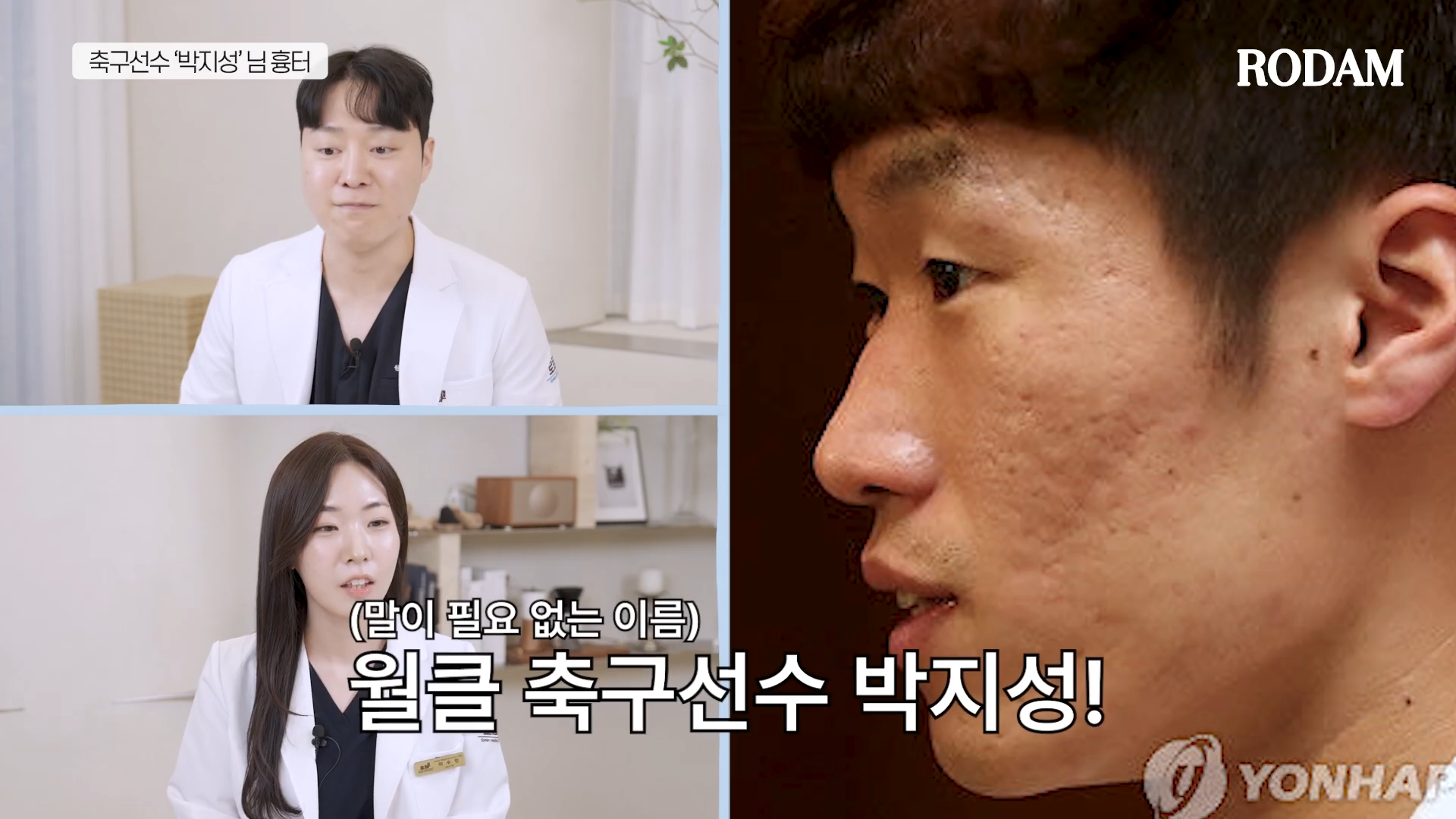박지성님 같은 경우엔 볼에는 롤링형 여드름 흉터, 모공성 흉터, 아이스픽 흉터와