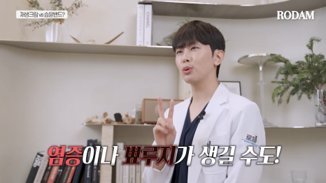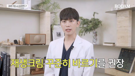 재생크림과 습윤밴드 역시 사용 목적과 방법에서 차이가 있습니다. 재생크림은 피부에 직접 발라 수분을 공급하고 피부 재생을 돕는 방식으로 사용되며, 꾸준한 보습 관리에 효과적입니다. 반면 습윤밴드(듀오덤)는 상처 부위를 물리적으로 보호하고 회복을 촉진하는 역할을 합니다. 하지만 너무 오래 붙여두면 산소 공급이 차단되어 염증이나 뾰루지가 생길 수 있습니다. 특히 새살침은 피부의 겉면을 벗기는 시술이 아닌 진피층을 타켓하는 시술이기 때문에 시술후 발생하는 약간의 출혈이 멎는 1~2일의 시간이 지난 후라면 습윤밴드를 제거하고 재생크림을 꾸준히 바르는 것이 좋습니다.